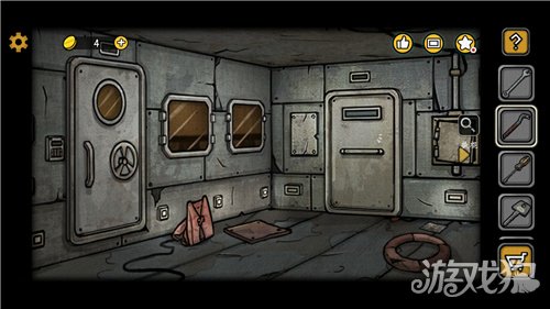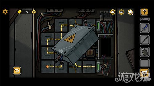 2.还是在这个房间了,点击墙壁上挂着的配电箱,用扳手拧下螺丝,发现需要钥匙,之后退出这个房间,来到驾驶室,点击地面上的配电盒,还是用扳手拧螺丝,可以得到一个好得电池;