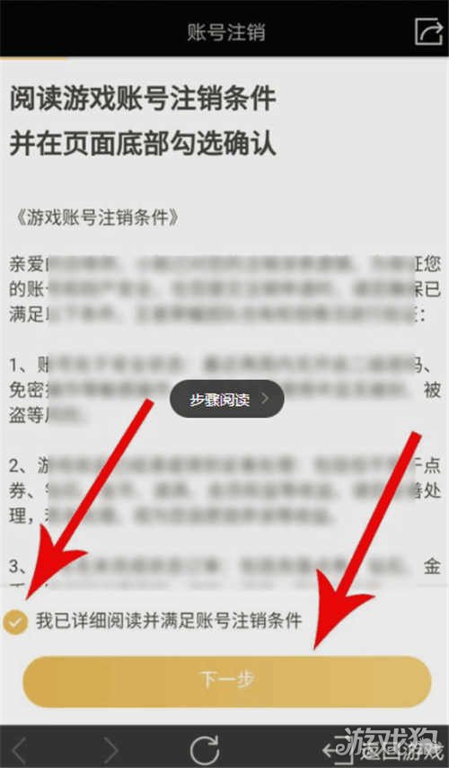打开账号注销协议界面勾选账号注销协议,然后点击“下一步”。