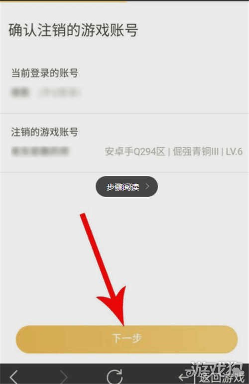打开确认注销游戏账号界面点击“下一步”,然后点击“验证”按钮进行注销即可。