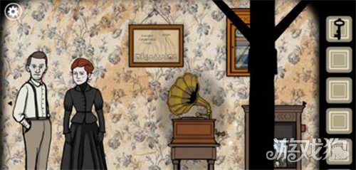 唱片放到唱机上,两个人就会开始准备跳舞了,你要做的就是控制他们朝左/朝右跳,怎么控制呢?点击女的手臂就会向右,点击男的手臂就会向左,整个的顺序就是刚刚解开的柜子上方刻着的箭头顺序,跳完就会获得钥匙。