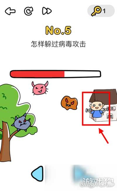 直接将小男孩移动到房子里即可。这一关和消灭病毒第三关异曲同工,待在家里就是最好的防范!