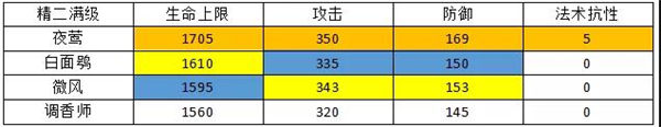 从面板上来看,夜莺在群奶里面实打实的处在一个霸主地位,相对不低的防御和自带的法抗能让她面对物理攻击和法术攻击时都具有一定的生存能力。既然夜莺是特化了法抗的医疗,接下来我们就从她的天赋和技能的搭配开始分析。