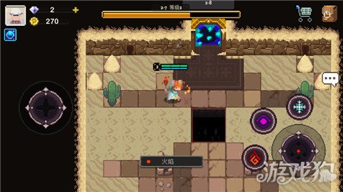 在第二关远古荒漠我们将第一次全方位体会到地牢的陷阱机制,碰到就掉血的普通仙人掌,在附近就会爆炸形成范围伤害的胖仙人掌。地板上隐蔽的毒蛇在被攻击后就会被定身以及遭受毒系伤害,还有伤害不封顶的空洞其周边还围绕着影响移动方向的流沙。这里元素师们要记住一点高度交互的地图机制并非只是阻碍你通关在这关中我们完全可以最大限度的利用陷阱。