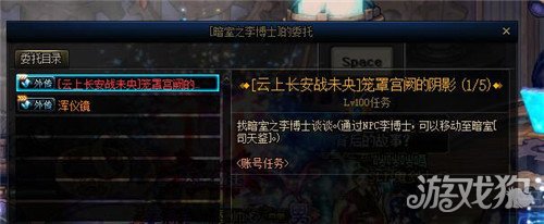 移动到暗室和李博士对话接取“云上长安战未央”的五个指引任务,任务需要我们与怀隐对话