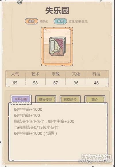 最强蜗牛失乐园怎么样,贵重品信息介绍。失乐园是最强蜗牛手游中橙色S级文化类的贵重品,那么它的加成属性怎么样呢,下面小编带来最强蜗牛失乐园的信息介绍。