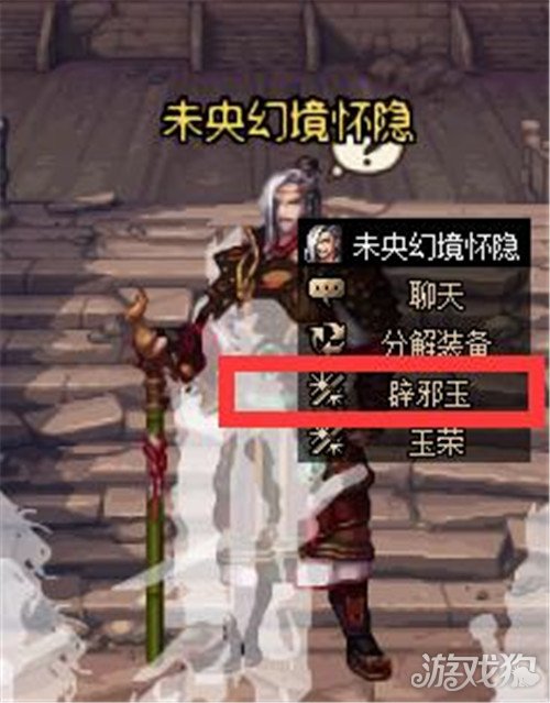 其次,在哪里合成,我们找到未央幻境的NPC怀隐,然后选择辟邪玉合成就可以了