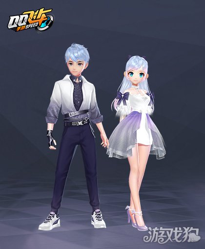 炫彩的舞台,等你来换上新套装一起来闪耀。女生一袭银发染上了紫色的灯光,白色的连衣裙上装饰着可爱的蝴蝶结,裙摆的轻纱更是闪烁梦幻的光泽。男生黑色的内搭宛如闪烁的星空,在白色的外套下更显神秘,腰间的皮带则彰显不羁气质。