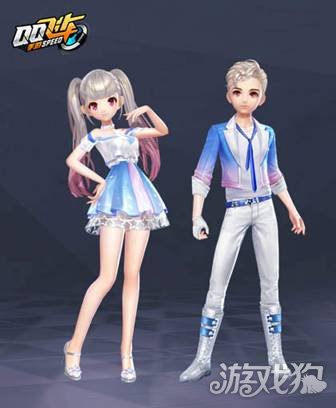 女生以清爽可爱的双马尾发饰搭配粉蓝色的抹胸短裙,层层叠叠的蕾丝增加了甜美的气息。男生以粉蓝色晕染小西服搭配白色长裤,修饰出挺拔修长的身材,魅力非凡。