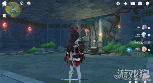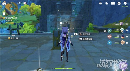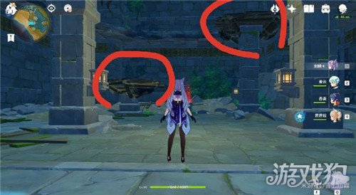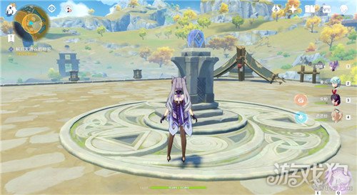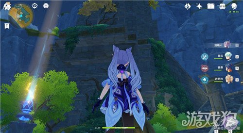 记得带刻晴,或者岩系主角(两个中任意一个)位置在蓝色柱子正前方山顶上