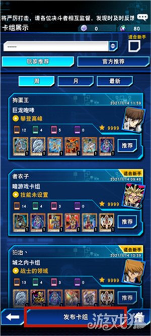 选择好卡组类型后,就能将其发布。