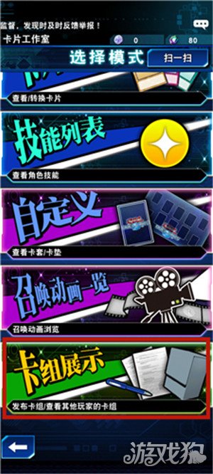 首先在卡片工作室中,下拉到最底栏,点击【卡组展示】按钮,具体位置如下图所示。