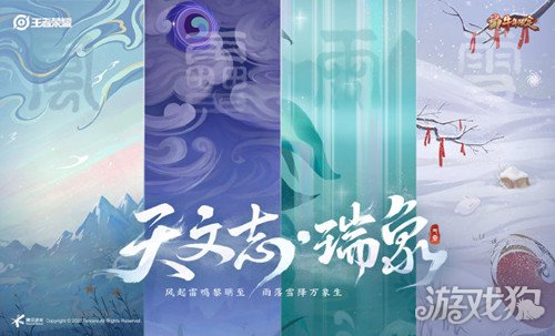 在颜色上以温和的星蓝色体现风的柔和,以浓烈的深灰蓝表达风的凌冽;在造型方面风纹、卷云纹贯穿皮肤纹样设计,凸显风的流动感;装饰和花纹上有鸟嘴鹿头等均是取自古代神话中风伯的形象元素。