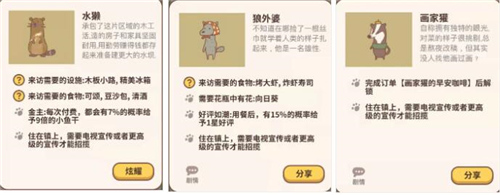 动物餐厅镇上的客人有哪些,镇上的客人大全。动物餐厅的新玩法喵其林评选正在进行中,玩家需要在指定的时间内完成任务,才能成功通关,其中有一个任务是招揽到指定数量的镇上的客人,那么镇上的客人有哪些呢,如果你还不知道的话,就随小编一起来看看吧。 镇上的客人大全 相较于招揽村里的客人,招揽镇上的客人难度还是比较小的,因为镇上的客人在所有的客人里占比还是比较大的。 有两个镇里客人是比较容易招来的 就是需要放向日葵和蓝风铃的“狼外婆”和“独眼蝴蝶犬” 只放向日葵加上宣传,来狼外婆的几率会非常大