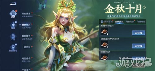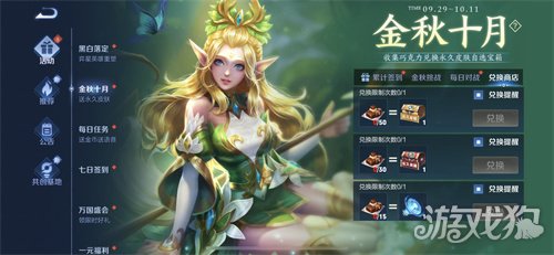 巧克力王者荣耀的最新国庆活动【金秋十月,送永久皮肤】的活动道具,活动时间是9月29日更新后-10月11日23:59,活动位置在主页-活动面板-金秋十月,送永久皮肤。