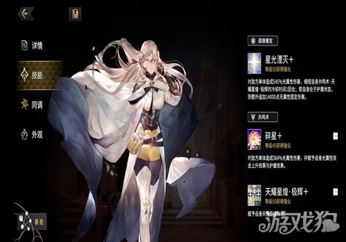 碎星十:对敌方单体造成3649%6光属性伤害,并赋予自身光属性攻击上升效果与护盾效果。