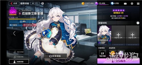 玩家进入游戏后,可以在主页面中看到图鉴页面,选择图鉴中的员工,可以看到目前所招募的所有员工信息,选定刘美娜员工,可以看到此员工属于制裁者,级别为SR级,有着超高的攻击力和暴击率。在作战能力中防御力和暴击值都会有所提升。