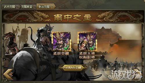 新联合觉醒南中之主开启条件:孟获觉醒+孟获做主将祝融为副将