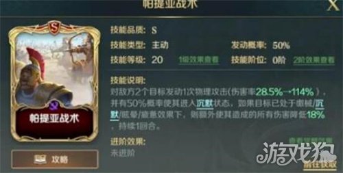 2、文明与征服刘邦技能推荐使用的第二个是帕提亚战术,帕提亚战术可以在攻击发出后附带沉默效果,如果已经处于控制等负面状态下会有额外的debuff增加,减伤其造成的伤害,在控制流中可以提升阵容的综合能力;