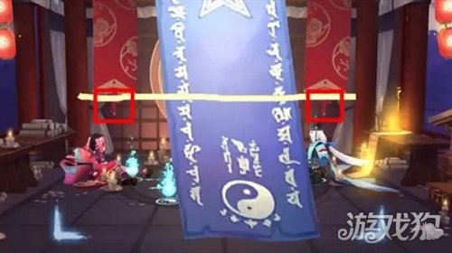 虽然说是一条横线,但是起点和终点还是要找好的,对着画面上两个窗帘上的扎带之间画一条直线即可,或者从倒数第五个鬼火穿过,到右边第五个鬼火。要画到边框处,但是注意不要画过头。