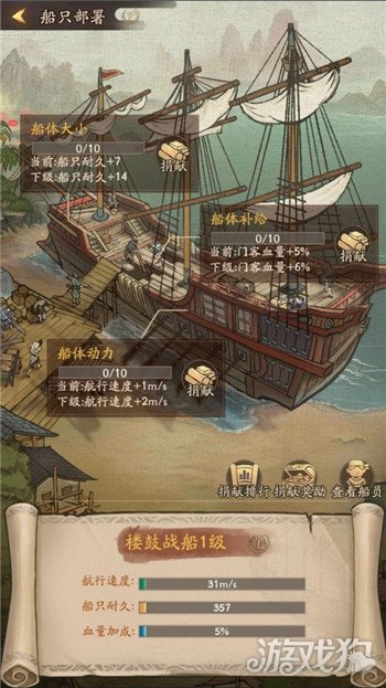 3、击败海盗可获得下阶段【南海丝路】船只捐献材料,提升船只耐久、航速和出战门客血量,并升级船只等级;