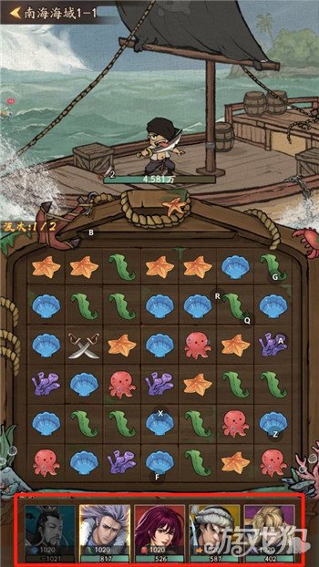 每位掌柜将自动派出士农工商侠五队船员通过消除海底生物攻打海盗,以获得捐献材料建造航海船只。