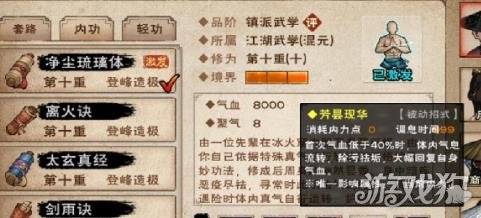 养血:被动 修炼此内功可使人强身健体,气血上限提升671点。