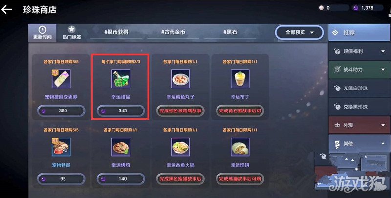 除了采集这个最主要的获取方式之外,小伙伴们也是能够去珍珠商店购买它的,只需要打开珍珠商店,选择“宠物”这一栏,就能看到需要的幸运结晶了,然后就能消耗黑珍珠来购买获取了。