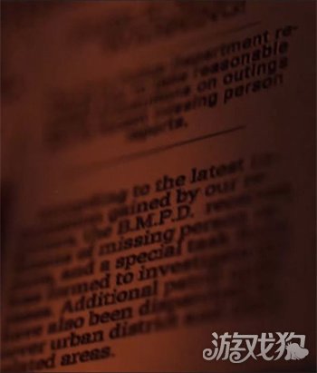 难以阅读的剪报,标题xxxx safety warning(xxxx安全警告),内容大概是某部门正在调查一个人员失踪案件。B.M.P.D大概就是冷山市警察局。还有一个关键词“latent(潜伏)”。不知道是什么东西在潜伏?