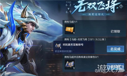 言归正传,对抗路天花板的称号,就是马超熟练度为紫色后,去限时活动界面领取的,活动期间多用马超打打排位赛就能轻易达成条件了。