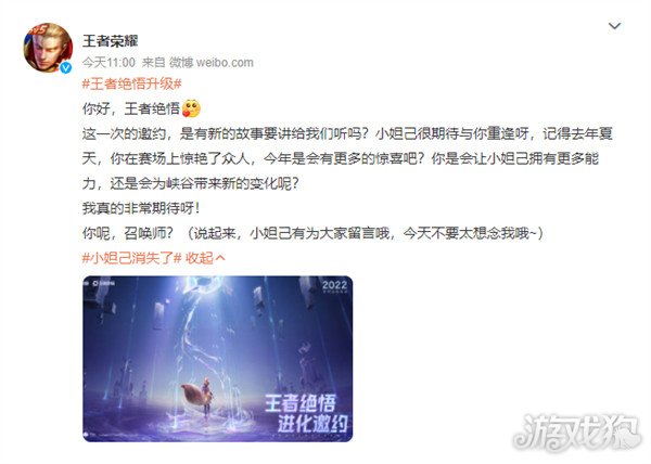 这一次的邀约,是有新的故事要讲给我们听吗?小妲己很期待与你重逢呀,记得去年夏天,你在赛场上惊艳了众人,今年是会有更多的惊喜吧?你是会让小妲己拥有更多能力,还是会为峡谷带来新的变化呢?