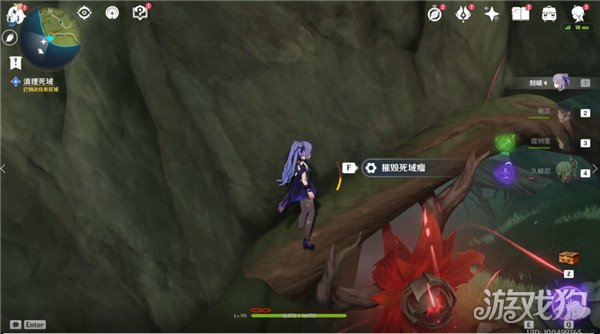 ▲1.前往需要清理的死域:与草种子交互后,消耗草种子攻击「朽败之枝」,击败受死域侵蚀的怪物,最后靠近交互清除死域瘤。共两个区域,第一个区域的死域瘤需要一定高度才能交互清除。
