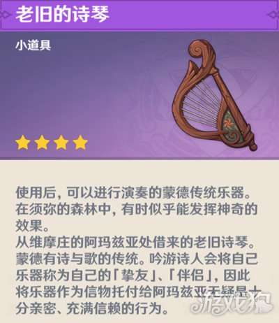 在没有获得歌谱之前是无法进行部分的解密的,使用小道具【老旧的诗琴】在特定地点弹奏指定歌谱可以帮助我们解密,