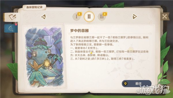 ▲1.在梦中的桓那兰那,与兰那罗共度无忧节:在恒那兰那与八个点位的兰那罗对话,分别获得任务道具它们的花。除了对话就可以完成,还有几个是子任务。