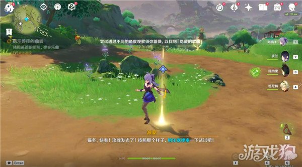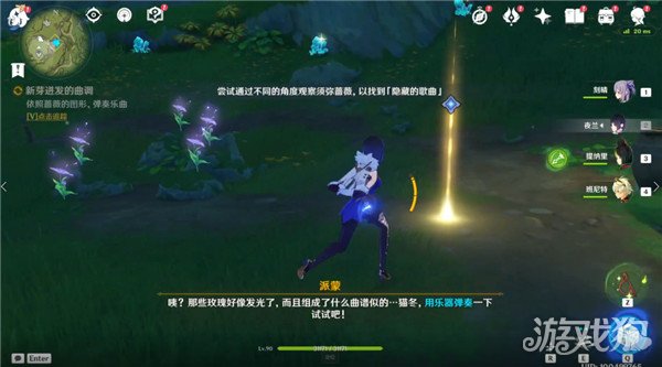 2.观察须弥蔷薇,寻找隐藏的歌曲:围着蔷薇转一圈,大致对着小屋子方向抬一点点视角就可以触发任务后续了。