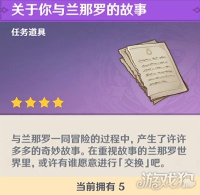 加上之前与各种兰那罗一同进行了冒险,我们可以获得共五份任务道具【你与兰那罗的故事】。