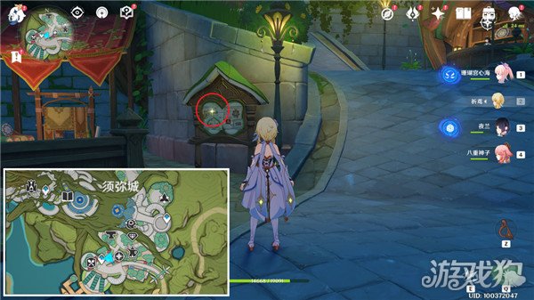 1,首先,我们来到须弥城的这个位置,与告示牌交互,开启解密