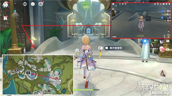 (3)然后我们来到智慧宫,进门之后,在我们对面的桥下有一个宝箱