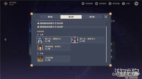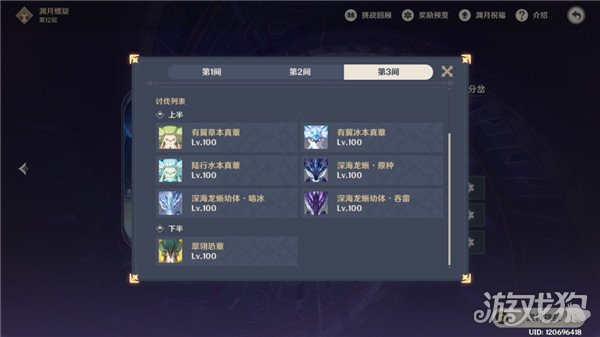 第三间:看群友聊这次深渊,第三间应该是难度最高一间了。上半可以优先进攻血量最高的深海龙蜥,也是最大一只。下半boss层,属于灌伤害的一层。