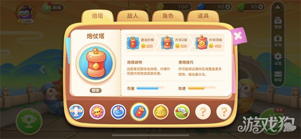炮塔说明:远距离范围攻击炮塔,对爆竹范围内怪物造成高伤害。
