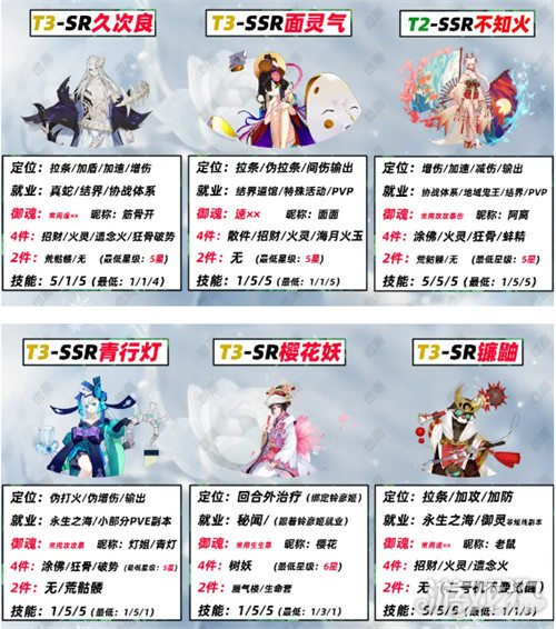 T3:久次良、面灵气、不知火、青行灯、樱花妖、镰鼬
