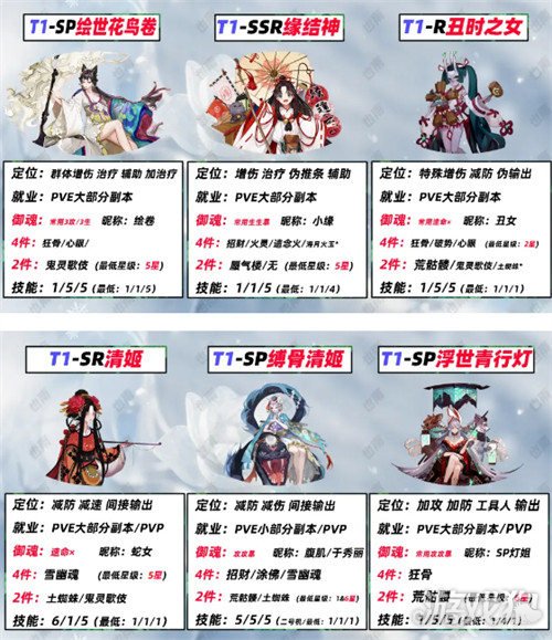 T1:绘世花鸟卷、缘结神、丑时之女、清姬、缚骨清姬、浮世青行灯