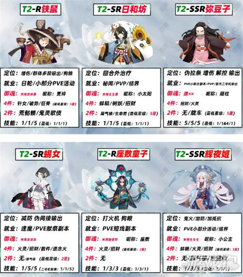 T2:铁鼠、日和坊、弥豆子、蝎女、座敷童子、辉夜姬