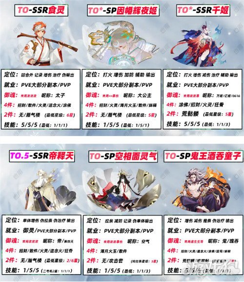 T0:食灵、因幡辉夜姬、千姬、帝释天、空相面灵气、鬼王酒吞童子