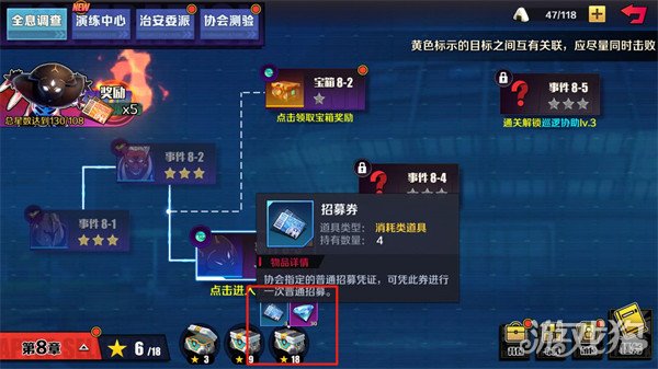 当我们在每个副本都拿到满星之后,章节的满星奖励宝箱也会赠送“招募券”。
