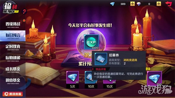 触碰水晶球进行“预言”,第二天就可以领取对应的奖励。