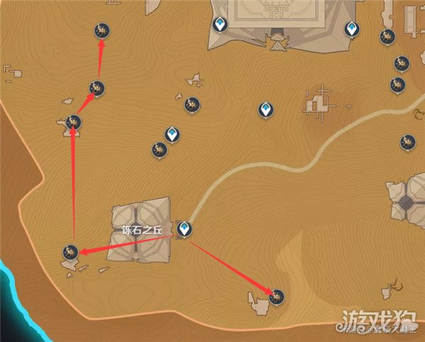 原神圣甲虫地表位置大全 43只圣甲虫采集攻略,圣甲虫位置分布在地表和地下,因此找起来非常的麻烦,下面是小编为大家整理的地表上43只的位置,下面一起来找找吧。 击打圣甲虫会使它遁入沙里(原地等会就会重新出来) tips:建议调整到晚上的时间寻找圣甲虫(白天的沙原与圣甲虫颜色相近) 荼诃落谷(8只) 丰饶绿洲(15只) 阿如村、沙之眼区域(10只) 饱饮之丘左边区域(5只) 砾石之丘区域(5只)