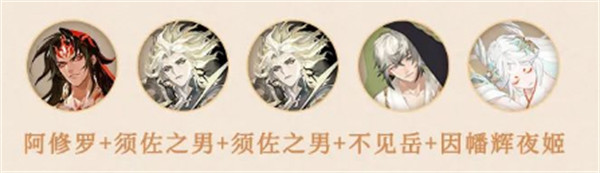 只要把之前的收尾式神换成须佐之男就可以极大地降低收尾式神的练度要求,阵容参考: