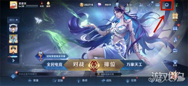 1、首先,大家打开游戏,进入到游戏主界面后,点击右上角的设置选项。