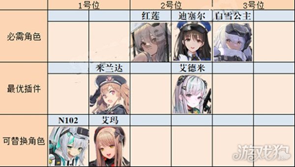 1、阵容推荐:红莲、迪赛尔、白雪公主、米兰达、爱德米(替补N102、艾玛)。