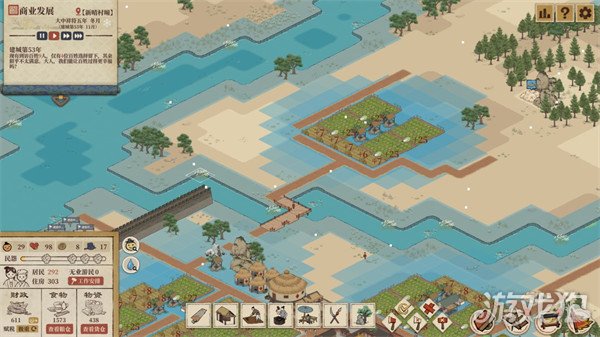 2.人员分配前期多积累点米菜,后面看缺什么或需要优先建造什么建筑就先集中去生产对应物资,所以需要时不时看图、调整人员